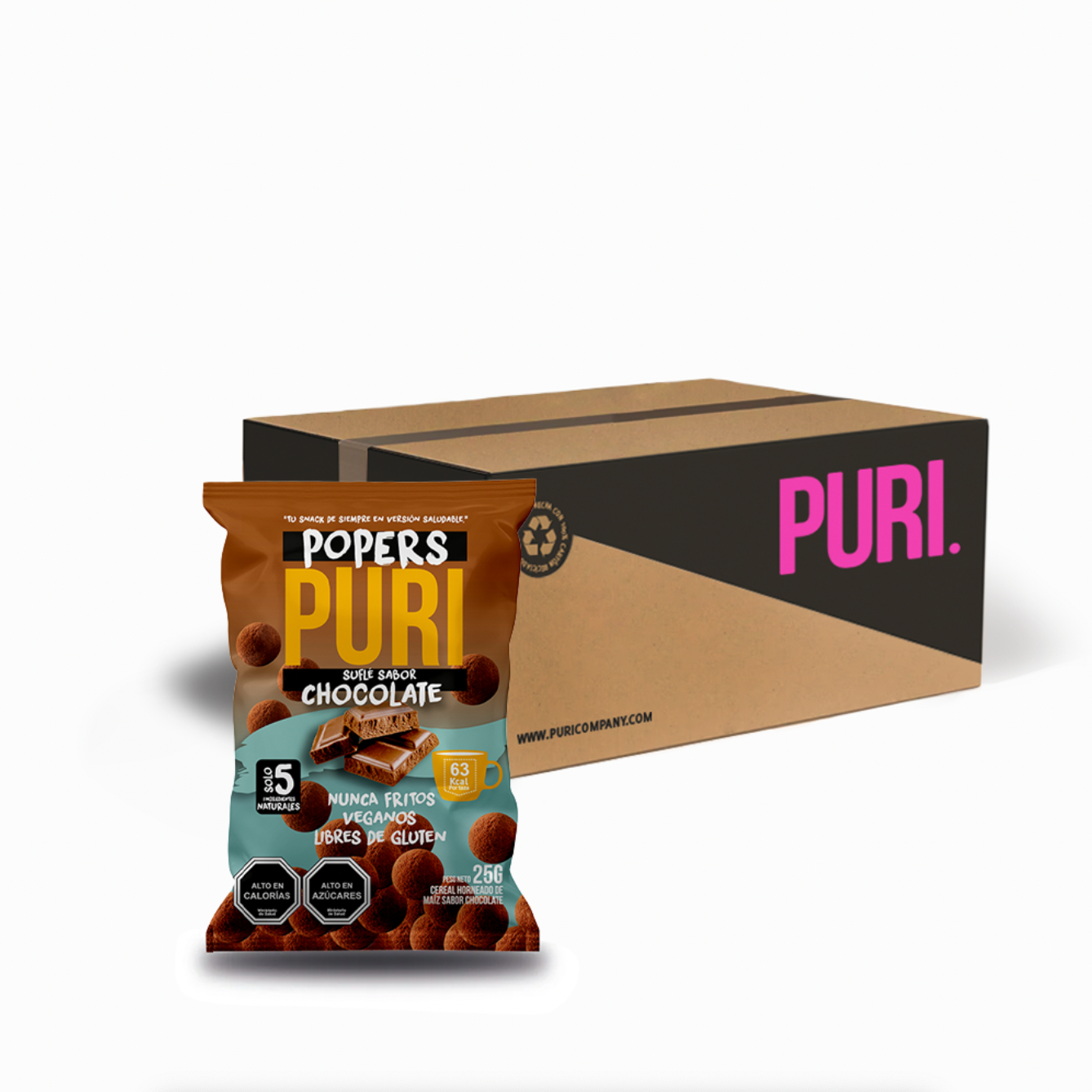 Puri Popers Cacao es la colación perfecta para quienes buscan algo dulce, rico y natural. Su textura crujiente y su simplicidad lo convierten en un favorito para cualquier momento del día. Son sufles de maiz con polvo de Cacao por dentro y por fuera. Irresistibles!