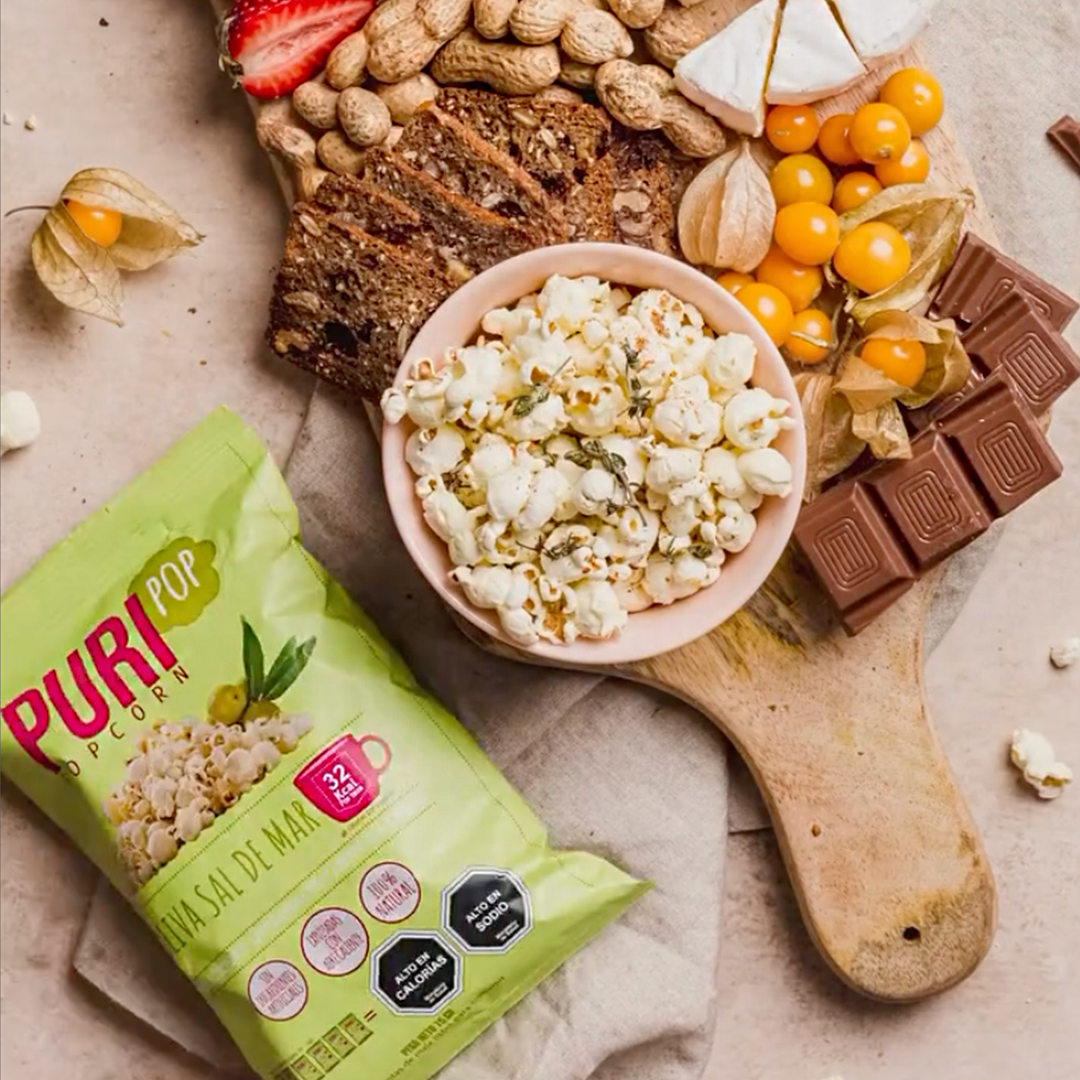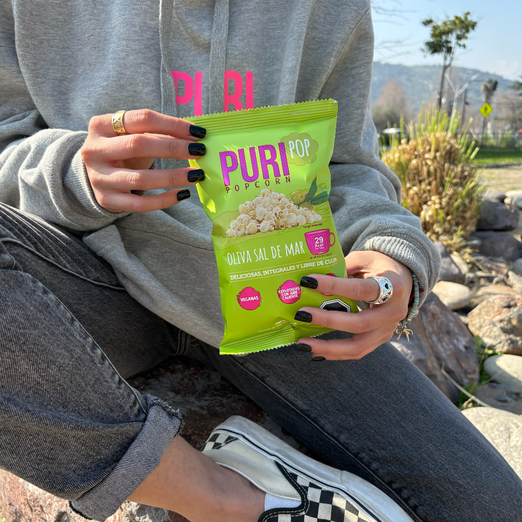 Nuestras Cabritas Oliva & Sal de Mar Puripop en formato colación conservan el sabor auténtico y natural de la versión familiar, pero ahora en un práctico tamaño colación, ideal para acompañarte durante el día. Hechas con aceite de oliva extra virgen y sal de mar, estas cabritas son horneadas, veganas, sin gluten, y bajas en calorías, lo que las convierte en una excelente opción para una colación consciente, liviana y sabrosa.