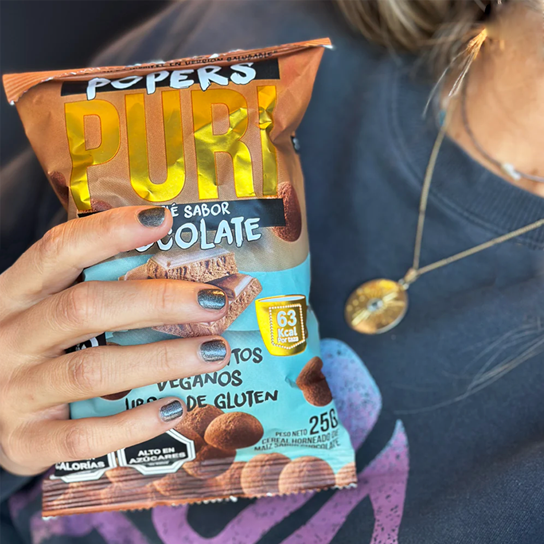 Puri Popers Cacao es la colación perfecta para quienes buscan algo dulce, rico y natural. Su textura crujiente y su simplicidad lo convierten en un favorito para cualquier momento del día. Son sufles de maiz con polvo de Cacao por dentro y por fuera. Irresistibles!