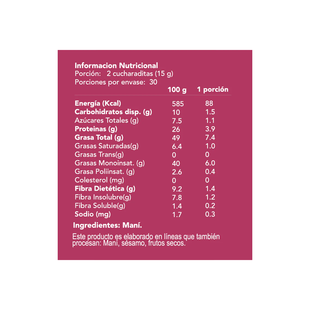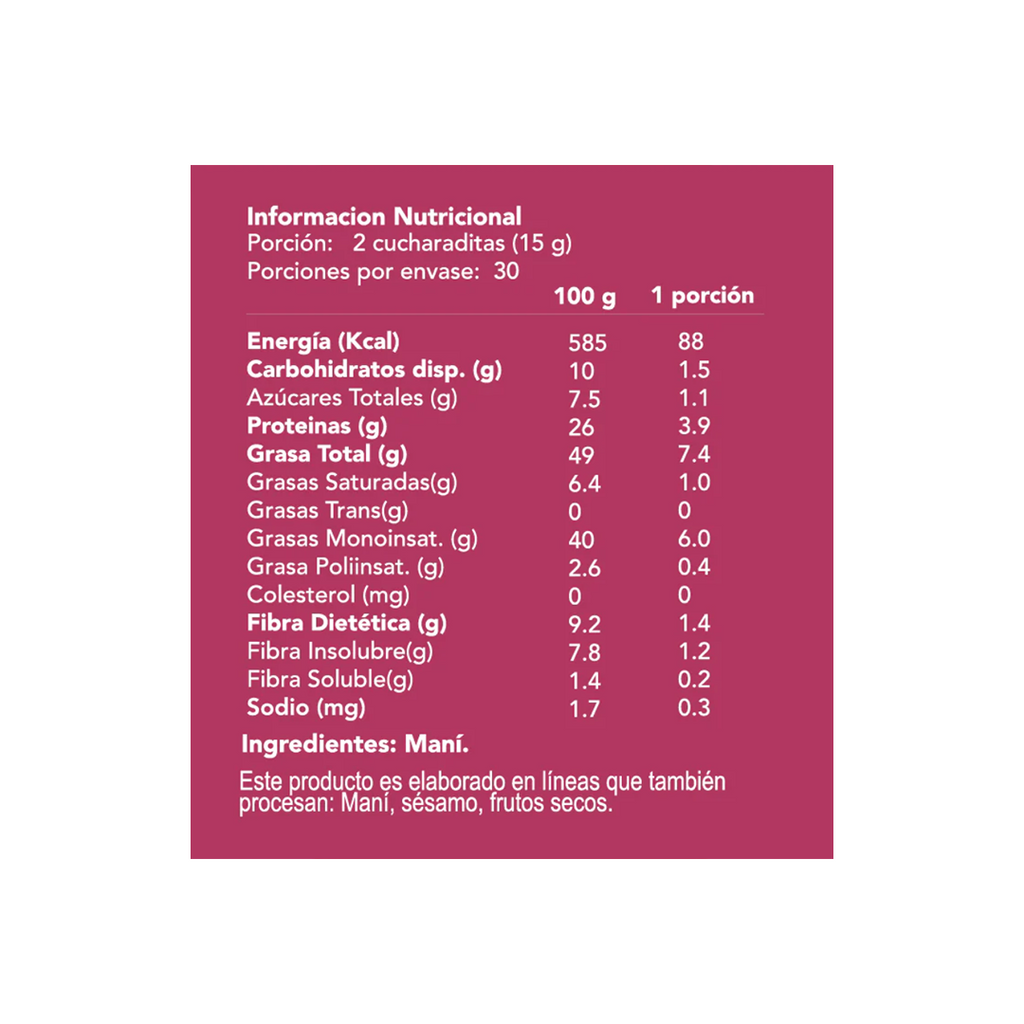 Puri Mantequilla de Maní está elaborada con 100% maní tostado, sin azúcar añadida ni ingredientes artificiales. Su textura cremosa y su sabor intenso la convierten en la opción perfecta para quienes buscan un alimento natural, saludable y rico en proteína vegetal.