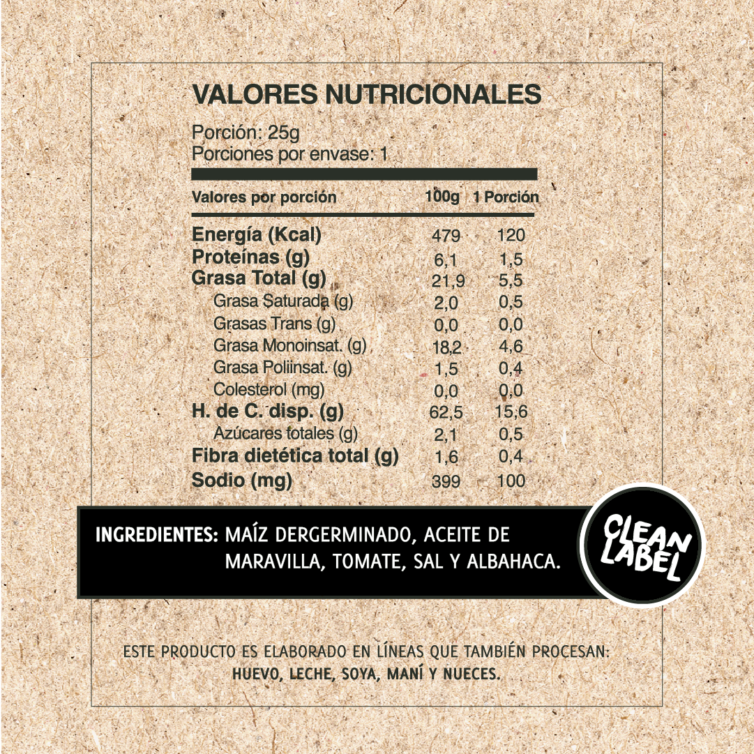 - 🍅 Sabor salado a tomate y albahaca, natural y gourmet y 🍫 Sabor cacao, dulce y natural.
