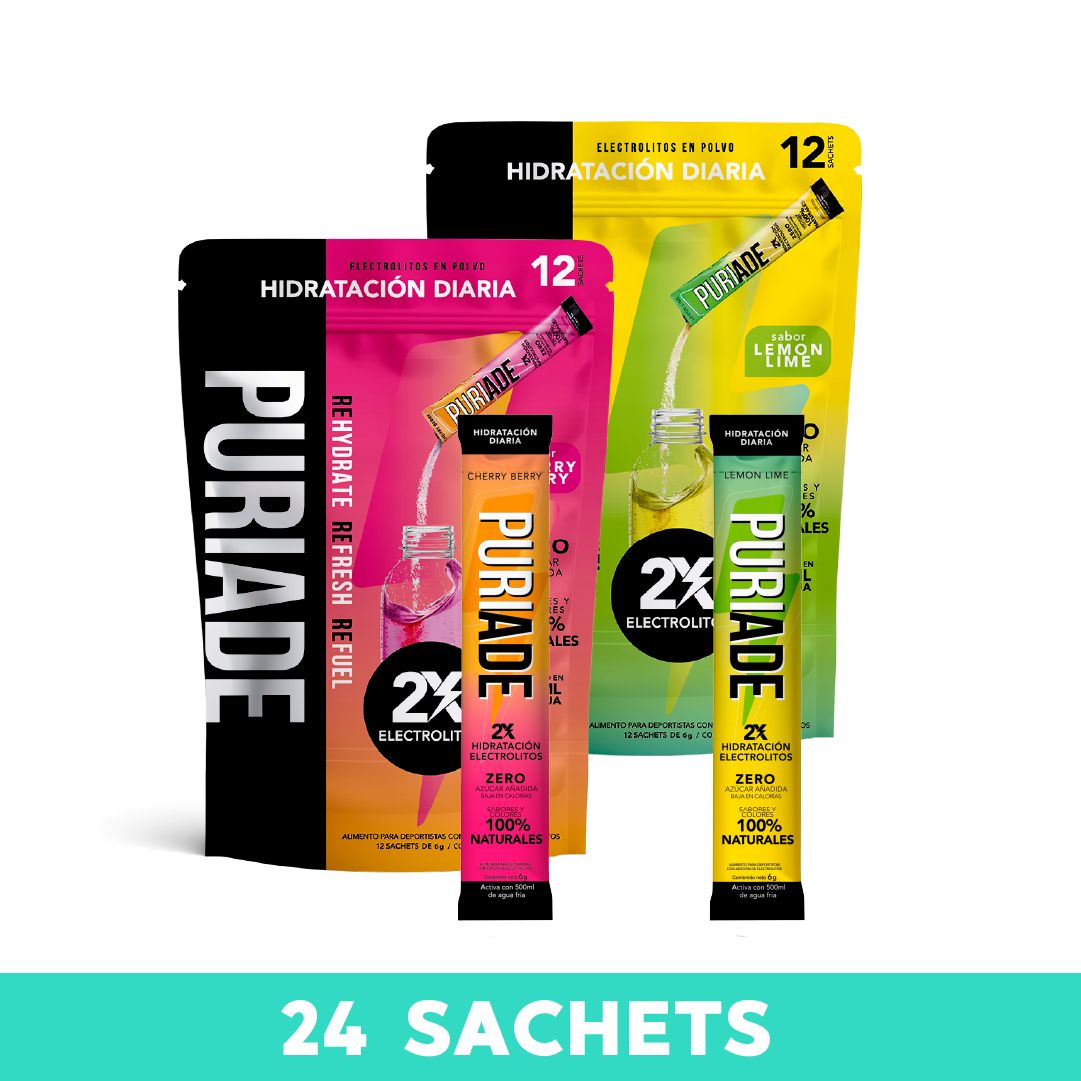 - Contenido: 2 Doypacks con 12 sachets adentro c/u. 24 sachets en total.